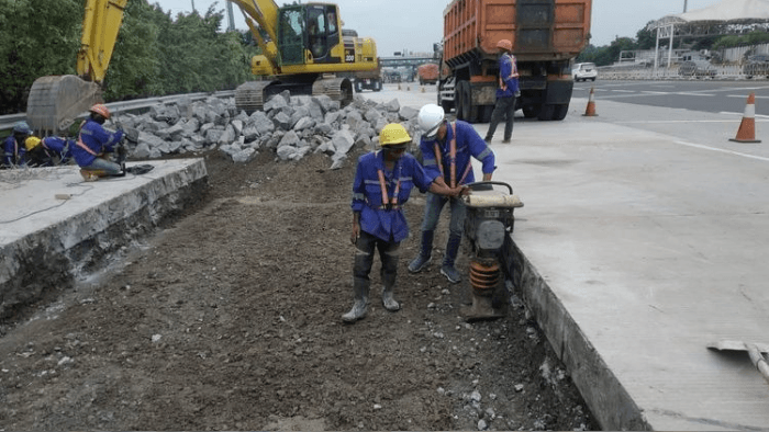 - Perbaikan seluruh struktur perkerasan, drainase, bahu jalan, tebing, dan talud